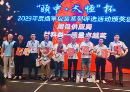 “2023年度煙包品牌供應商材料類——質量卓越獎”