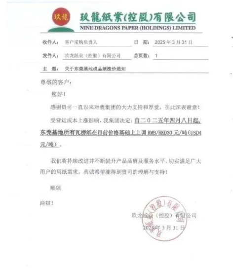 此次調(diào)價(jià)雖未達(dá)到市場(chǎng)預(yù)期的高度,但較之3月中旬那輪"漲價(jià)-回調(diào)"的波動(dòng)周期,當(dāng)前市場(chǎng)環(huán)境已發(fā)生微妙變化。從供需基本面來(lái)看,盡管終端消費(fèi)需求尚未顯現(xiàn)實(shí)質(zhì)改善,但產(chǎn)業(yè)鏈各環(huán)節(jié)價(jià)格已處于近兩年低位區(qū)間,加之廢紙等原料成本持續(xù)高位震蕩,紙企盈利空間被嚴(yán)重?cái)D壓。據(jù)實(shí)地調(diào)研顯示,華東、華南部分區(qū)域訂單量較前期已呈現(xiàn)邊際改善,特別是電商包裝領(lǐng)域出現(xiàn)階段性補(bǔ)庫(kù)需求。 值得關(guān)注的是,本輪調(diào)價(jià)策略明顯呈現(xiàn)"多點(diǎn)觸發(fā)、梯次推進(jìn)"特征。頭部企業(yè)選擇在傳統(tǒng)淡季啟動(dòng)價(jià)格修復(fù),既是對(duì)成本壓力的應(yīng)激反應(yīng),也隱含著對(duì)市場(chǎng)預(yù)期的引導(dǎo)作用。從產(chǎn)業(yè)博弈角度分析,當(dāng)前紙企繼續(xù)降價(jià)空間已極其有限,若再行壓縮利潤(rùn)可能觸發(fā)更劇烈的產(chǎn)能調(diào)整。 不過需要清醒認(rèn)識(shí)到,當(dāng)前價(jià)格調(diào)整更多源自成本倒逼機(jī)制,而非需求端實(shí)質(zhì)性回暖驅(qū)動(dòng)。據(jù)第三方數(shù)據(jù)顯示,全國(guó)重點(diǎn)造紙企業(yè)庫(kù)存仍維持在18-22天的相對(duì)高位,且4月份新增訂單尚未形成持續(xù)增長(zhǎng)態(tài)勢(shì)。若后續(xù)終端消費(fèi)市場(chǎng)未能如期復(fù)蘇,本輪提價(jià)的實(shí)際落地效果或?qū)⑹芟蕖=ㄗh業(yè)內(nèi)密切關(guān)注清明節(jié)后物流恢復(fù)情況,以及五一小長(zhǎng)假前的備貨節(jié)奏變化,這些都將成為檢驗(yàn)本輪漲價(jià)持續(xù)性的關(guān)鍵觀測(cè)點(diǎn)。 玖龍2025財(cái)年歸屬母公司凈利潤(rùn)4.70億元,同比增長(zhǎng)60.57% 而早在3月25日,玖龍紙業(yè)剛剛發(fā)布2025財(cái)年中報(bào)。公司在2024年7月1日-2024年12月31日實(shí)現(xiàn)營(yíng)業(yè)收入334.65億元,同比增長(zhǎng)9.32%,歸屬母公司凈利潤(rùn)4.70億元,同比增長(zhǎng)60.57%,基本每股收益為0.10元。 公告顯示,報(bào)告期內(nèi)公司包裝紙板、文化用紙、高價(jià)特種紙及漿產(chǎn)品的設(shè)計(jì)年產(chǎn)能合計(jì)約2770萬(wàn)噸,其中牛卡紙、高強(qiáng)瓦楞芯紙、涂布灰底白板紙、白卡紙、文化用紙、高價(jià)特種紙及漿產(chǎn)品分別為1340萬(wàn)噸、370萬(wàn)噸、200萬(wàn)噸、180萬(wàn)噸、170萬(wàn)噸及510萬(wàn)噸。四家美國(guó)漿紙廠年產(chǎn)能約130萬(wàn)噸產(chǎn)品(包括用于文化用紙的單面涂布紙、銅版紙及涂布機(jī)械漿紙以及特種紙年產(chǎn)能約90萬(wàn)噸,再生紙漿以及硬木木漿年產(chǎn)能約40萬(wàn)噸)。