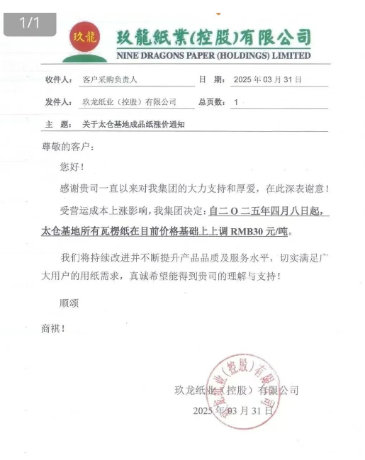 近期國(guó)內(nèi)包裝紙市場(chǎng)出現(xiàn)新一輪價(jià)格上漲動(dòng)向。繼東莞區(qū)域部分中小型紙企于上周末試探性調(diào)價(jià)30元/噸后,主要紙業(yè)大廠陸續(xù)釋放提價(jià)信號(hào)。江西理文造紙基地率先發(fā)布通知,計(jì)劃于4月7日上調(diào)Q紙與K紙報(bào)價(jià)30元/噸。幾乎同期,玖龍紙業(yè)東莞、太倉(cāng)兩大生產(chǎn)基地宣布自4月8日起,瓦楞紙系列產(chǎn)品全線上調(diào)同等幅度。
