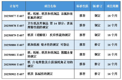 近日,國家標準化管理委員會下達2025年第三批推薦性國家標準計劃及相關標準外文版計劃的通知(國標委發[2025] 12號)。其中,《紙漿 抗堿性的測定》等7項造紙領域國家標準計劃項目獲批立項,具體如下所示。