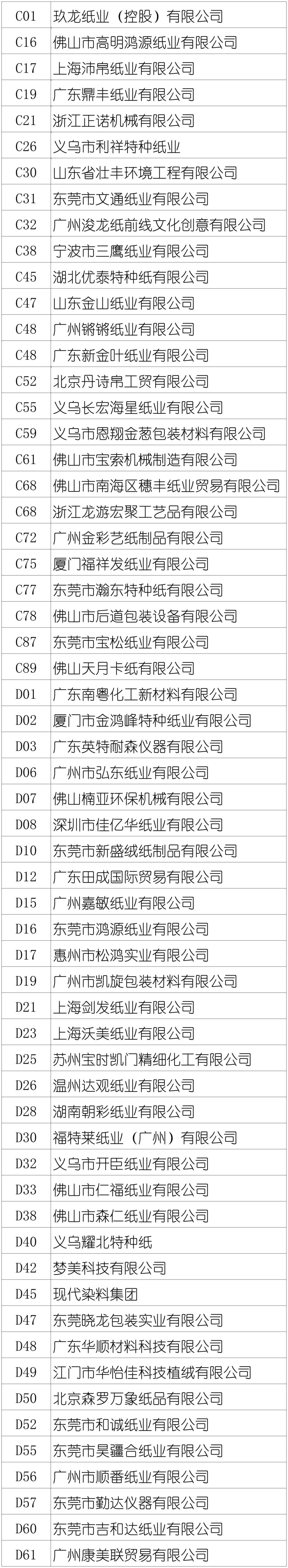由廣東、山東、河南、浙江、四川、廣西、江西、湖北、福建、江蘇、河北、山西、云南、湖南等造紙協(學)會主辦的2025第二十屆廣州國際紙展暨生活用紙展,將于6月5日-7日,在廣州琶洲保利世貿博覽館隆重召開。 來自制漿造紙、紙業、特種紙、造紙化學品、衛生用品、生活用紙等領域的200多家優秀企業,致力于為全球紙企、經銷商、印刷廠、紙包裝廠、紙張終端用戶等搭建“一站式”采購平臺。 2025第二十屆廣州國際紙展的參展企業和品牌,集中展示制漿造紙、紙業、特種紙、造紙化學品、衛生用品和生活用紙等領域的創新產品、技術和解決方案,滿足專業觀眾和經銷商的采購需求。 請查看本屆參展商及品牌名單:
