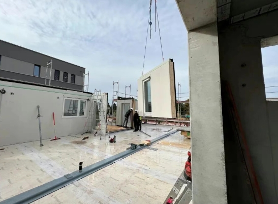 Gumpp & Maier 建筑公司項目經理沃爾夫岡・克萊特瑙(Wolfgang Krettenauer)指出:“Kerto LVL 的高精度在預制環節至關重要。極小的誤差率幫助我們優化全流程,確保高質量構件實現‘零失誤’生產。這些預制墻體構件(含集成窗戶與外立面護墻板)可在現場快速組裝,大幅縮短了整體施工周期。”