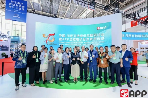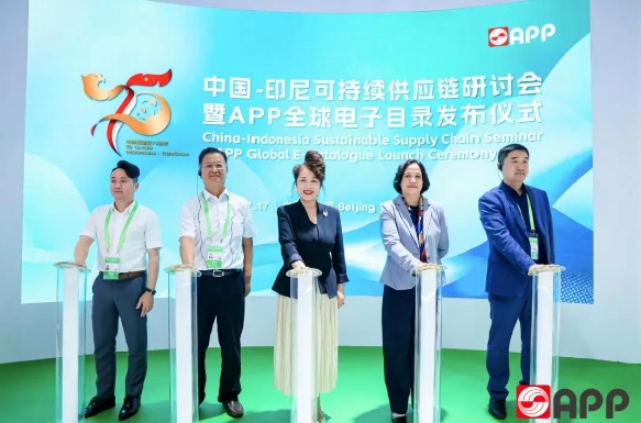 7月17日,“中國(guó)-印尼可持續(xù)供應(yīng)鏈研討會(huì)暨APP全球電子目錄發(fā)布儀式”在金光集團(tuán)APP鏈博會(huì)展臺(tái)隆重舉行。中國(guó)國(guó)際貿(mào)易促進(jìn)委員會(huì)會(huì)長(zhǎng)、黨組書(shū)記任鴻斌專程前來(lái)APP展臺(tái)出席活動(dòng),并駐足展臺(tái)了解APP“雙循環(huán)跨國(guó)產(chǎn)業(yè)鏈”與“綠智賦能生態(tài)鏈”兩大維度展線和全球各事業(yè)部創(chuàng)新展品。