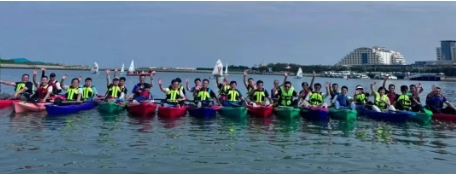 趣味競(jìng)技與休閑項(xiàng)目:沙灘排球、拔河等競(jìng)技項(xiàng)目,讓成員們?cè)诒绕粗心ズ吓浜霞记伞⒃鲞M(jìn)彼此默契;海上皮劃艇環(huán)節(jié)則為大家提供了放松空間,乘艇馳騁海面的體驗(yàn),既如同在公司平臺(tái)上自由施展才能,也在輕松氛圍中激發(fā)了成員向上發(fā)展的內(nèi)驅(qū)力。