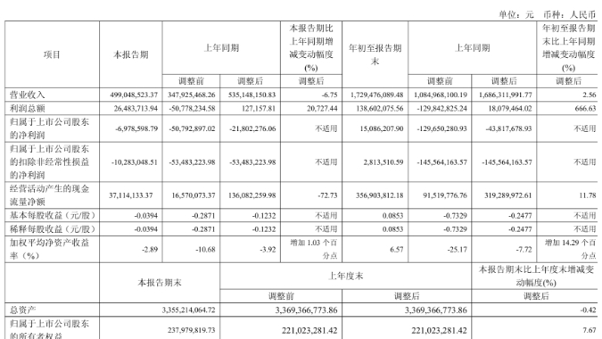 冠豪高新(600433) 公司實現營業總收入52.34億元,同比下降1.94%;歸母凈利潤虧損9432.39萬元,上年同期盈利6998.55萬元。