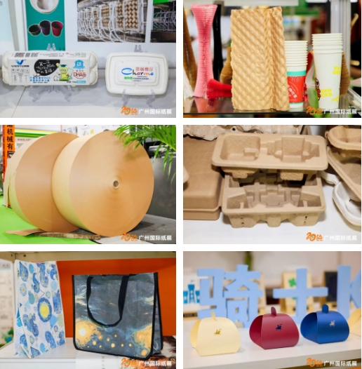 以紙代塑展區(qū) 基礎(chǔ)材料與復(fù)合材料:無塑涂布食品卡、纖維素膜、全降解紙塑復(fù)合膜、納米纖維素涂層材料等; 紙基包裝制品:紙漿模塑餐具、全降解紙袋、電商緩沖紙托、冷鏈包裝用防水紙基容器等; 生產(chǎn)設(shè)備與助劑:紙漿模塑成型機(jī)、模具(定制化開發(fā))、生物基粘合劑、降解 促進(jìn)劑等配套裝備與化學(xué)品。