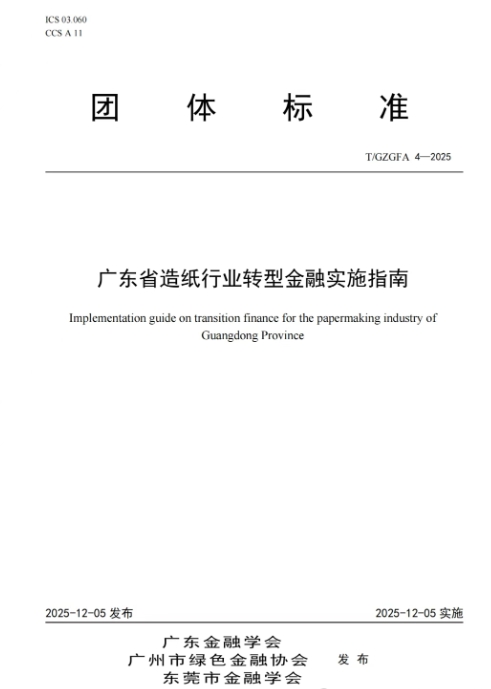 12月10日,2025年廣東綠色金融改革創(chuàng)新推進(jìn)會(huì)暨轉(zhuǎn)型金融標(biāo)準(zhǔn)發(fā)布會(huì)”在廣州南沙舉行,會(huì)上發(fā)布《廣東省造紙行業(yè)轉(zhuǎn)型金融實(shí)施指南》《廣州市轉(zhuǎn)型金融實(shí)施指南》兩項(xiàng)標(biāo)準(zhǔn),填補(bǔ)了廣東省乃至全國范圍相關(guān)領(lǐng)域的空白,為產(chǎn)業(yè)綠色化轉(zhuǎn)型提供明確指引。