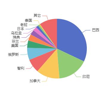 最新數據顯示,2024年6月份,我國紙漿進口總量為261萬噸,其中木漿進口量為227.77萬噸,占比約為87.27%。據統計,木漿主要進口來源國為巴西、印尼、加拿大、智利、俄羅斯、美國等,其中巴西占比最大,達到了32.02%,印尼其次為16.67,加拿大為12.71%。