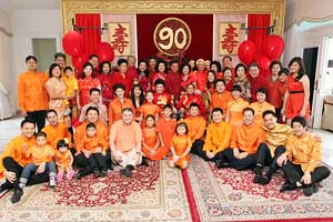 這是印尼當(dāng)?shù)匾粋(gè)華人旺族的生日家宴,過(guò)生日的老太太今年八十歲了。按照華人的風(fēng)俗,八個(gè)兒女、二十六個(gè)孫子孫女一一穿上紅裙、打上紅領(lǐng)帶,盛裝出席。相依相伴六十六載的老伴更是送上了深情的祝福。